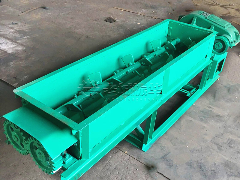 該機(jī)用二組螺旋葉片軸對(duì)粉狀物進(jìn)行噴濕輸送,濕度可通過(guò)加濕調(diào)節(jié)器控制,達(dá)到適合運(yùn)輸要求。雙軸結(jié)構(gòu)的優(yōu)點(diǎn)是攪拌效率高,占地面積小,采用擺線針輪減速機(jī)傳動(dòng),轉(zhuǎn)動(dòng)平衡,噪音低,螺旋葉片軸支承密封嚴(yán)密,運(yùn)行可靠。攪拌機(jī)的進(jìn)料口設(shè)在頂部,有二排加濕器噴水,噴頭結(jié)構(gòu)特殊,可以保證噴水均勻,濕度符合輸送的要求。